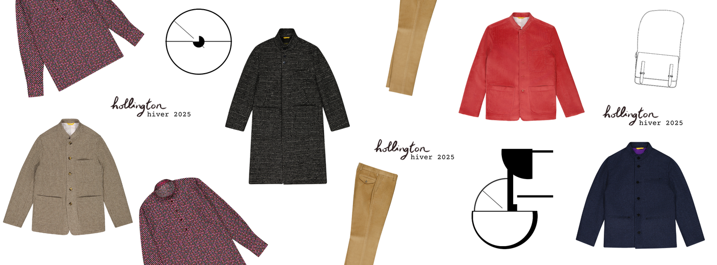 Hollington, c'est le soin du détail, l’amour de la matière, la singularité et du savoir-faire. C’est la maîtrise du vêtement qui dure une vie entière, qui vous accompagne sans faillir, qui travaille à votre place et vous laisse les mains libres et l’esprit tranquille.